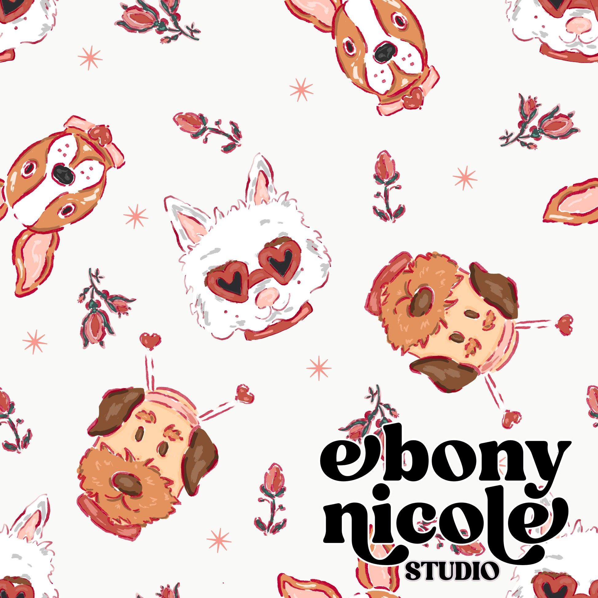 Doggy Love Seamless Pattern- Light Gray